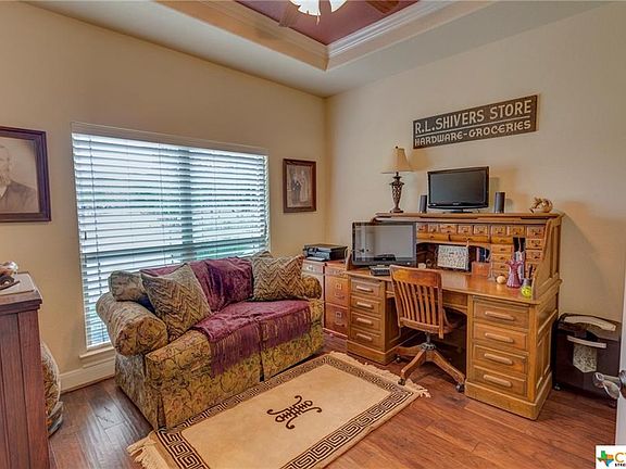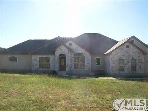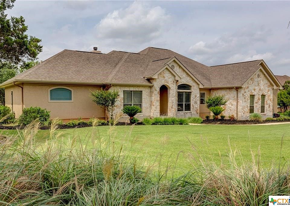 STUNNING HOME IN POPULAR ROCKWALL RANCH! Enjoy country living just minutes away from New Braunfels and San Antonio. This beautiful home has a great split floor plan with 3 bedrooms, a Jack n Jill bathroom, and a full bathroom on one side. The master suite is fabulous with a huge walk-in closet, coffee bar, double vanities, jetted tub and a gorgeous walk-in shower. Beautiful wood floors in the office and master and large tile though out the living areas with carpet in the guest rooms. Stainless steel appliances, center island, ceiling fans, impressive light fixtures, wine bar, expansive ceilings and decorator paint through out. Professionally landscaped with Zoysia Grass and a green belt behind the property. You will want to spend all your time in this outstanding rear yard with a large covered porch, an extended patio, and it is big enough for a pool. Come see this incredible home today!!