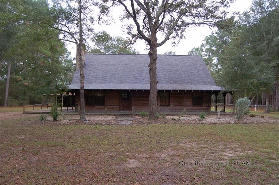 Darling log cabin home! Complete with wrap around porch and views of the nearby wooded lot! Features 2 bedrooms and 2 full bathrooms and an open concept den/kitchen area. Interior also features solid wood walls and closets. This home truly is a unique find! Don't miss the 2 carport space AND the connecting workshop! This home will not last long. Make your appointment soon.