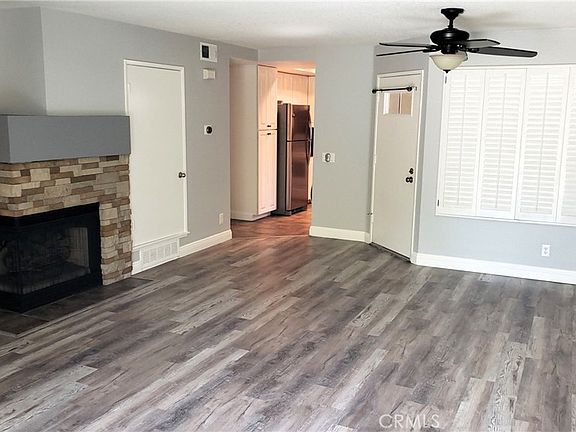 Drop what you are doing. Don’t worry that it is hot outside. Grab your car keys and drive to this property right away. I promise you will love it! It is a lower-level, 2-bedroom condo with an attached direct-access garage. Yes, I said attached direct-access! Woo hoo! Wait until you see the back patio. Oh my! But, first, let us begin with the approach. This is a cute complex and the location of this home is perfect. It is in the back of the community next to lots of parking for your guests who will want to visit you right away. After walking in the front door, you will be amazed at how large the great room is. With tasteful paint, beautiful plantation shutters, and luxury vinyl plank floors, you will be so proud of your new home. The kitchen has recessed lights and stunning crown molding. The laundry is just outside the kitchen and there is a newer full-sized washer and dryer included, and this is in addition to the stainless-steel refrigerator also included. Both bedrooms look out to the back patio and there is a large vanity with a sink in the master bedroom. The back patio is something you need to see to appreciate. It is big! Are you looking for a large patio? This is definitely the one for you! It has a built-in fire-pit, brick pavers, and drought tolerant plants making this patio not only practical but stunning to look at and enjoy all year long. The community has 2 pools and is close to restaurants, shopping, and so much more. Let’s make this your new home!