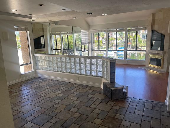 Waterfront penthouse w/private location on Lake Mission Viejo! Upstairs single level condo with approximately 1333 sf of living space all on one level (per Builder records), and includes 2 bedrooms w/2 bathrooms. No one above! Includes tall cathedral ceilings in the large formal living room w/fireplace, lakeside balcony and gorgeous, unobstructed views of the lake! The remodeled kitchen includes custom cabinets, stainless steel appliances, slabs of beautiful granite and more! A spacious formal dining room and a breakfast nook are adjacent to the kitchen. Views of the lake from more rooms! The master bedroom suite includes tall cathedral ceilings, sliding doors to the lakeside balcony, a walk-in closet w/organizers and a remodeled bathroom. The second bathroom has been upgraded with granite counters and more. This is an end unit with additional windows, more natural light and private porch at the top of a flight of stairs. This condo has the largest of the lakeside balconies available in the community, complete with gas, electric and water. HOA fees include water, trash, sewer. Common amenities include the gated entry, community pool/patio area, community beach, community boardwalk and more!