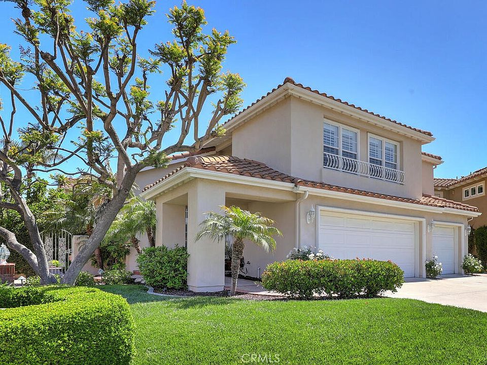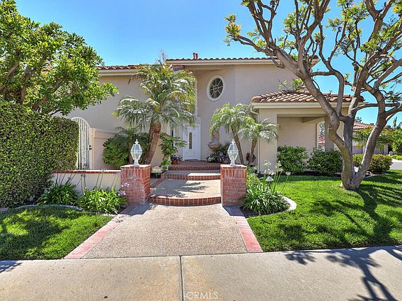 Welcome to this very special Bellagio Plan 4 offering. Elegance abounds in this meticulously maintained and upgraded 4 bedroom plus huge bonus room(no closet)-ideally located on the corner of a double culdesac steet in the heart of Califia in South Mission Viejo. (This floorplan does include a downstairs bedroom and adjacent ¾ bath.) Formal entry opens to soaring ceilings in the foyer, formal living and dining room, framed by tall decorative columns. Natural light floods the home with plenty of windows and an open corner location! The whole house (except two bedrooms) boasts sumptuous travertine flooring and a neutral palette throughout. Excellent floorplan for entertaining and daily living includes a beautiful white kitchen featuring granite countertops, double oven, gas cooktop and decorative tile embellishment, all opening to a large breakfast nook with bench seating and garden views. The comfortable family room includes a granite fireplace and sliding doors leading out to the pretty yard. Additionally, the downstairs features a perfect office (or downstairs bedroom), an updated ¾ bath with granite countertops and vessel sink, and a spacious laundry room downstairs with a sink! The impressive circular staircase leads upstairs to spacious bedrooms and the bonus room. The luxurious primary suite offers high ceilings, a fireplace, and a spa-like bath featuring updated dual sink vanity with granite countertops, deep soaking tub, separate shower, and a huge walk-in closet! Secondary bedrooms and bonus room are serviced by a full hall bath with dual sink vanity, glass enclosure and updated fixtures. The bonus room is enormous with endless possibilities! (Add a closet to create a huge bedroom), or use as an awesome playroom, homeschool, man-cave, or game-room! The impeccable yard was beautifully designed to make the most out of California enjoyment; the perfect amount of space for both lower-maintenance and outdoor living. Features include: Terra cotta style tile, extensive seat-wall planters, large fountain, mature privacy-trees, built-in BBQ with bar seating counter and fridge, bird bath and gardens wrapping around the side. Additional upgrades and features include: Epoxy coated piping, dual zone AC/Heating–w/upgraded newer units, 2 newer toilets, skylight, French doors in family room, regular termite inspections, walking distance to Bathgate Elementary, and of course Lake Mission Viejo Membership- with beaches, watersports, summer concerts and more!