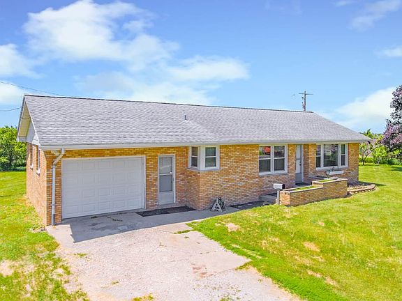 Dreaming of having a small place in the country with outbuildings and a bit of land? This solid brick ranch style house has been in the same family since built in 1966. The mudroom with sink and tiled bathroom flooring, upgraded windows, roof and insulation are all nice bonuses within the home. Fields border this home on all sides - talk about privacy when the corn is up! The home is cooled by 2 window units. Electric panel is 100 amp service. There is a deep well on the property (465'), a septic system and a leased propane tank. The house sits on 1.69 acres, has 2 outbuildings, a corn crib and a moveable chicken coop. Riding mower stays. Home warranty included. Sold 'as-is". Make your move to the country, where life is a bit slower and less complicated.