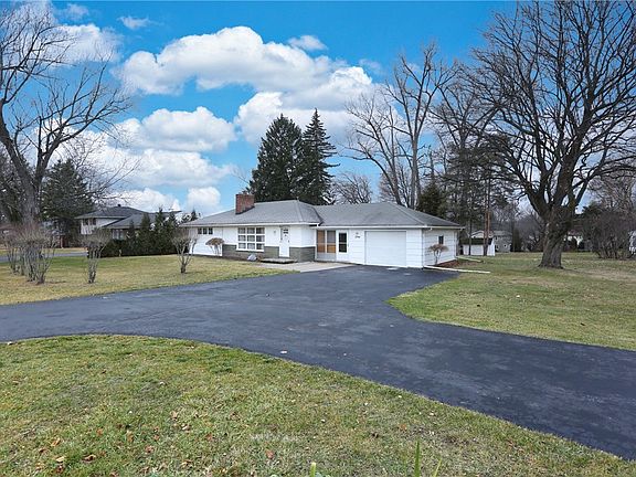 Spacious ranch with large enclosed porch/breezeway area and finished room in the basement that are not included in the square footage. Large fireplaced living room, oak parquet floors, eat in kitchen, large 1.5 car garage,large breezeway would be easy to make into a year round living space. Easy access with driveways on Chili Ave and side street. Delayed negotiations until Saturday January 7th at 3pm. Please give 24 hours to respond to offers.