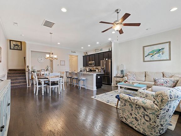 This is the opportunity to own this immaculate townhome in a prime time location in The Market Common. The 3 bedroom, 2.5 bath, 2 car garage townhome is move in ready! Enjoy and entertain outside on the front porch and be able to walk to downtown shops, restaurants, festivals, and entertainment. Walk through the front door and enjoy the open floor plan, living room, dining area, and kitchen. The kitchen features granite countertops, tile backsplash, upgraded cabinets, and stainless steel appliances. There are top of the line Plantation shutters, crown moulding, and hardwood floors downstairs. On the first floor there is also a convenient half bath and pantry. The owners' suite is on the second floor and features a double vanity, granite countertops, tile floors, a separate deep tub, shower with glass door, TWO large walk-in closets and a ceiling fan. One of the most desired features is the top floor balcony off of the owners' bedroom. Enjoy the views of The Market Common and the sun when it sets in the afternoon! The laundry room is upstairs as well as two more bedrooms and a full bath with granite countertops. The HOA fee includes the amazing resort style pool complex, with large pool, kiddie pool, two hot tubs, hammock area, fitness center, ping pong tables and even a nice lazy river to relax and enjoy the Market Common lifestyle. Living in this community there is easy access to the beach, dining, shopping, and entertaining... all is a golf cart ride, bike, or walk away! Trails, bowling, a dog park, a movie theater, playgrounds, and gyms are all just some parts of living the lifestyle of The Market Common. Schedule your showing of this highly desired townhome today!