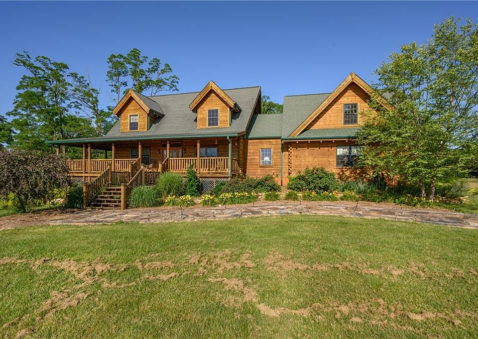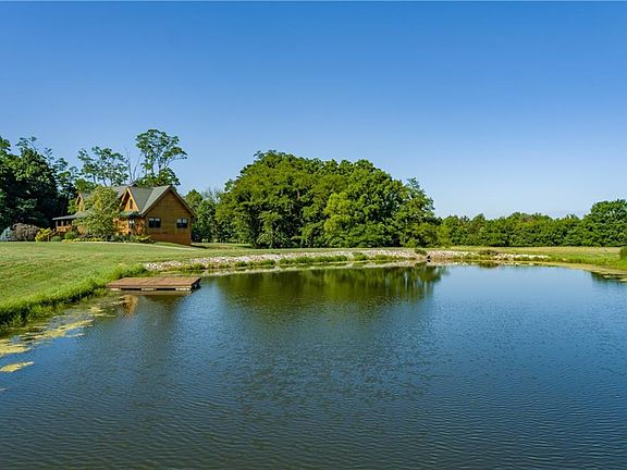 This custom built true log home is absolutely spectacular. Drive down the tree lined driveway to your 35 acres. Pass by the 10 tillable acres & stocked fishing pond. Livestock barn with fencing, loft & large pole barn. At the home, step onto the full wrap around porch and enjoy the view. The solid construction & beauty of the Heritage log home does not disappoint. Vaulted ceilings greet you in the living with a floor to ceiling stone fireplace. Full chefs kitchen including a huge center island, granite counter tops & cherry cabinets. The home has mahogany trim, beautifully updated bathrooms & dual geothermal systems. The finished basement offers a family room, bedroom, full bathroom & office. SELLER WILLING TO PAY UP TO 3% IN BUYERS CCOSTS