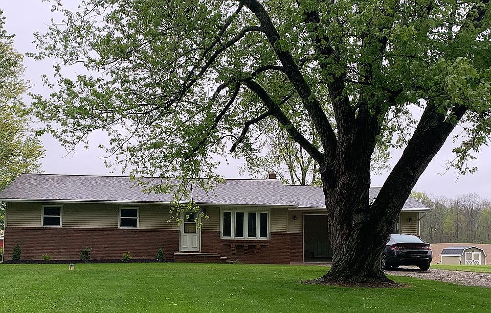 Beautiful ranch style home in the country, completely remodeled from top to bottom, inside and out. This three bedroom, one bath home is very spacious for any family in search of a new home! It has extra closets for storage in the hallway and living room. The living room has a large bay window overlooking the countryside. Every room has a fresh coat of paint and new carpet. The bathroom has been completely refinished. The dining room is the perfect place to enjoy dinner with the attached kitchen. This gorgeous new kitchen has all new cabinetry, new countertops, and a brand new dishwasher. The kitchen comes with an island perfect for serving your guests. This home has a large basement which includes a new air conditioner, hot water tank and water softener. There is central air conditioning and propane heat. Attached to the house is a two-car garage with a new automatic garage door, and is heated for your comfort. The exterior of the home has new vinyl siding and a new roof. This home is truly a great find!