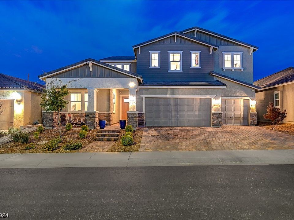 WELCOME HOME to this gorgeous 5-bed, 5-bath home in coveted Inspirada! This home beams w/pride of ownership from top to bottom + you’ll feel that the moment you walk thru the door. Beautiful natural light shines in creating a light, airy + welcoming space. The open, functional floor plan makes excellent use of the 4,350sf of living space w many areas for relaxing + entertaining alike. A highlight is the gorgeous backyard that includes a modern pool/spa, elevated sitting area w gas firepit, grass area, covered patio + custom outdoor BBQ. Coming back inside, the kitchen, family + breakfast nook blend seamlessly into one space yet the home still offers a more formal living + dining room. An oversized loft is located upstairs along with three other bedrooms, the spacious primary suite + a flexroom that could be used as a workout room, nursery or office. Let's not forget the 3-car garage, mountain views from every upstairs window + an amazing gated neighborhood. This home is a MUST SEE!