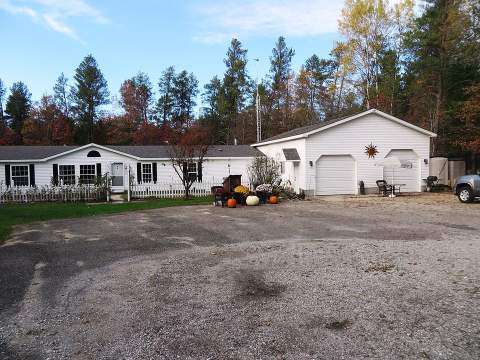 3 bedroom, 2 full bathroom home with 1,904 square feet of living space not including the attached sunroom! Huge 36x28 attached garage with 12 foot ceilings that is insulated and heated, along with a 220 amp air compressor! (Overhead doors are 9 ft and 10 ft)Home features central air, large master suite with a jacuzzi tub, huge kitchen, 2 living rooms and a genuine fireplace. All appliances are brand new and still have warranties on them. 30 AMP RV hookup with a large carport complies with township zoning rules and restrictions. Walking trails throughout the 4.2 acres. Located VERY close to thousands of acres of state land and access to snomobile/atv trails!Home includes deeded access to East Branch of the AuSable River, clubhouse, and in-ground swimming pool.Simpli-Safe Alarm system