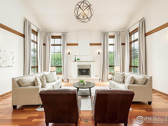 When dreams become homes, you get a piece of property like this. As if drawn from a fairytale, this architecturally stunning home is perfectly situated on a 5+ acre lot surrounded by nature, mature trees and rolling green hills which provide a sense of privacy and serenity. Gazing out of any window or from the expansive patios, you will see lush green landscape, the ever present mountain wildlife and cool breezes from the foothills. The interior is like none you have ever seen, with a floor plan and style that can only be described as magical in every way. From the gourmet kitchen, complete with every high-end appliance you can dream of to the waterfall quartz countertops and loads of cabinets and storage, to the picturesque dining and sun-rooms, your family will revel in the warmth of each space. The heart of this home is the two-story great room, complete with two story fireplace, wet/entertaining bar and wine storage room, this space invites all to cozy up and share the days' adventures. If you love your space and privacy, there is no other primary suite quite like this one- massive space and closets with a wet bar and luxury bathroom + balcony with scenic views, just trust me on this one you need to see it to believe it. In a separate wing, each guest room is complete with a tailored en-suite bath, designed with character and charm completely functional for a large family or plenty of guests. One of the most special spaces in this home and beloved by the seller is the library. With light and views from the surrounding windows and doors, it's lit up with natural light and offers a space for everyone to gather for reading, games or quiet time together around the fireplace. If it's fun you're looking for, the nearly 2700 sq foot finished basement is the place! Theatre room, gym, shuffle board and golf simulator are all found here. This neighborhood is only a 30 min. drive to Denver if you can believe that, but feels like a world away. A home, fit for a Queen!
