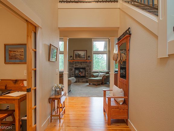 This property SOLD March 13, 2020 for $680,000. This beautiful, 4-bedroom, 3-bathroom custom, craftsman home built by Paul Fox sets on 1.37 acres and is located in the heart of wine country near Sweet Cheeks and Silvan Ridge wineries. The property is surrounded by natural forests and 100 acres of common ground owned by the upscale, welcoming Skyridge community. Stepping into this home, you'll love all of the natural light, openness, and forest views provided by the vaulted ceilings and large windows in the foyer and living room. Amenities include beautiful hickory hardwood floors, new carpet, granite counter tops, and vast amounts of storage space. The master bedroom is located on the first floor for easy, main-level living. Children or guests will enjoy separation of space with three additional bedrooms upstairs. The home includes an office and 17' x 15' bonus with a wet bar and gas fireplace, perfect for entertaining or as a family game room. Wake-up to the tranquility of wooded views or enjoy quiet evenings on the deck while deer graze in the backyard and turkeys go to roost in nearby treetops. Leave the cares of the day behind on the scenic country drive home. The Skyridge neighborhood includes a community water system, which is maintained by the homeowners association. Low monthly HOA dues cover road maintenance, all water usage and water system maintenance. No monthly water bill plus lower property taxes. Appointment Only. Qualified Buyers please contact Melissa McGuire 541-915-2780 or Greg Wirtala 541-600-0063 to schedule a showing.