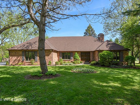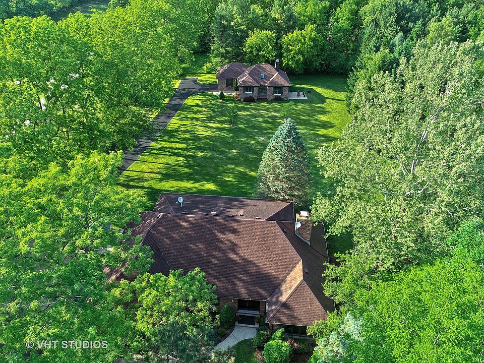 4.2 Acres of Serenity! This unique property features an all brick main house with 3 bedrooms/3 baths, a full finished basement an attached 3 car garage w/partial solar power, Tesla charger & an additional guest house w/rental potential! Updated white kitchen in main house w/granite & stainless steel appliances; 19' screened porch & finished lower level w/rec room, billiard room & media space! Large guest home features vaulted ceilings, stainless steel appliances, full basement, private patio and its own 2 car attached garage! Great earning potential property & ideal for pool, tennis, horses, etc! Currently the guest home is rented (month to month) by a tenant who has expressed interest in staying if the new owner wants to own it as an investment. Currently the rent collected from the tenant pays for the property taxes and majority of the costs of upkeep on the entire property. It is also ideal for an in-law arrangement or an Au Pair. All this adjacent to Grassy Lake Forest Preserve!