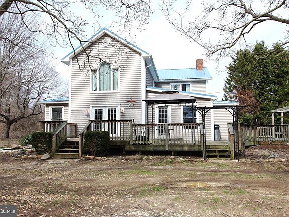 Nestled on a "no through" road, cleared and fenced, surrounded by trees this two story farm house waits for you. Charm and character greet you with wood ceilings on the main floor along with a country kitchen, a huge island and a large pantry. Beamed ceilings on the second floor and a third floor that just waits to be a child's playroom. Three fenced fields with run-in sheds and frost free water wait for your animals. Large old oak trees set the scene of a southern homestead. Complete with a partial wrap-around deck this property lets you enjoy the quiet of the country and having your animals at your finger tips. Sheds and outbuildings that include a chicken coop, a small hot house and a large barn (could be converted to a garage) complete the nook you have been looking for. A newer (2 years) metal roof on this home offers that wonderful and comforting sound when it rains and provides years and years of durability. Newer furnace (2014) and water heater (2017/18). Large windows bring in plenty of light. Built ins in family room and dining room. Fios is available.