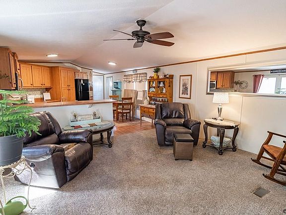 This 3 bedroom 2 bath 2012 Legacy manufactured home is turn key and ready for you to move in! With the split bedroom and open concept design you can entertain while you and your guests have space. Tucked away behind "the kitchen cabinets" is a hideaway laundry room with room for storage. Previous owner replaced carpet in the living room and hallway and the current owner has had new carpet installed in the main bedroom and one of the other bedrooms. Enjoy this great lot that is fenced and has been fully rocked for easy maintenance. The exterior of the home has was repainted with a fully covered trex top deck to enjoy your afternoons. Mobile also comes with an oversized storage shed for extra storage. Lot rent is $508/month plus $8/month for trash. Lot rent includes water, sewer, internet and basic cable. Property owner is responsible for gas and electric.
