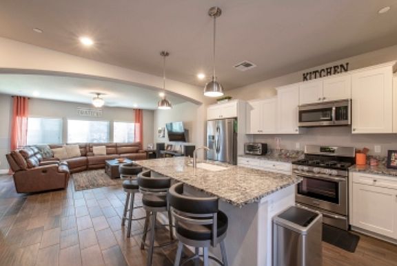 This like new home located in a quiet Clovis neighborhood is equipped with OWNER SOLAR for very low energy bills! There are 4 bedrooms and 2.5 bathrooms PLUS A HUGE LOFT with a closet that could be used as a 5th bedroom! . The downstairs has a very open concept with the kitchen open to the living room area great for entertaining. There is wood-look tile flooring through the downstairs with carpet upstairs. The kitchen features many upgrades including granite counter tops, soft close white cabinets, stainless steel appliances,& ample amount of cabinet space upgraded lighting has been done throughout the home as well. This home includes a fridge and a large center island with a breakfast bar. The backyard has beautiful stamped concrete and a built in gazebo making it an entertainers haven. The rent for this home is $2,595 includes OWNER paid Solar ! This home is move in ready!