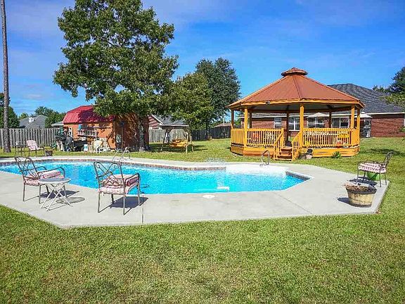 Gorgeous Full Brick 4 Bedroom 3 Bath home with acreage, in ground pool, 24 foot hexagonal gazebo, work shop and 2 car side entry garage. This is the home you have been waiting for. Enter through the foyer and you will find the formal dining room on the right and the office with French doors on the left. The Great Room has plant ledges, ceiling fan, electric fireplace and is a perfect place to entertain. The spacious kitchen boasts granite countertops, stainless steel appliances, bar area and also separate breakfast nook. The split floor plans Master Suite has a trey ceiling, ceiling fan, garden tub, separate shower and his and her closets.The second and third Bedrooms share a full bath and are off the Family Room. The 4th bedroom can be used as a mother-in-law suite, is in its own wing with a 3rd full bath that connects to the 25x11 Florida Room. The Florida Room has two sets of French Doors which connect to the kitchen and Great Room. The interior amenities include high ceilings, rounded corners, Spanish lace textured walls and ceilings, upgraded lighting, plant ledges, insulated tilt windows, and security system. The backyard is completed cleared and fully fenced. The L shaped in ground pool has tile coping and an automatic pool cleaner. You can relax on your 24 foot hexagonal gazebo or complete your weekend projects in the workshop. Both gazebo and workshop have electric. There is a 150 ft deep well that supplies the sprinkler system and has an attached air tank to regulate water flow. This meticulous one owner home has everything to offer even a 1 year home warranty. It is PRICED TO SELL so call and make your appointment today.