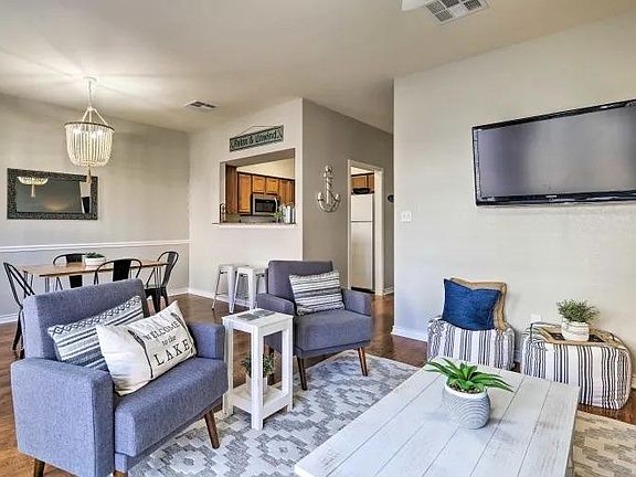 2 bed 2.5 bath Fully Furnished Condo with Garage, walk to the Lake, Tera Miranda Marina is right around the corner with restaurant, boat slips, City of Grove is a short 10 minute drive with lots of shopping and restaurants. this property is furnished with TVs, microwave, dishwasher , washer ,dryer. Amenities : lawn maintenance, Pool, workout room, Basketball court, fireplace seating area. Tenant is responsible for utilities No Smoking no Vaping