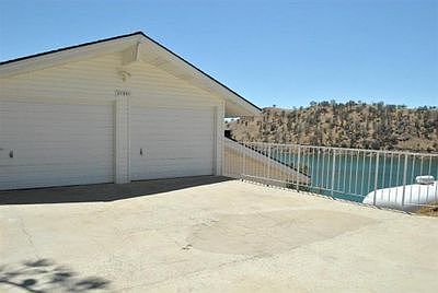 Millerton Lake Water front property. Kitchen features a long breakfast bar and is open to the Family Room. Isolated Master Suite offers a view of the lake, sliding door to private patio area and a large bathroom with double sinks, shower and sitting area. All 3 Guest Bedrooms on the lower level have sliding glass doors to the patio with a lake view. 2 car garage. Vinyl siding, 5 ton AC unit and roof was replaced in 2001 per seller. Public water & sewer. 1, 000 gal propane tank.