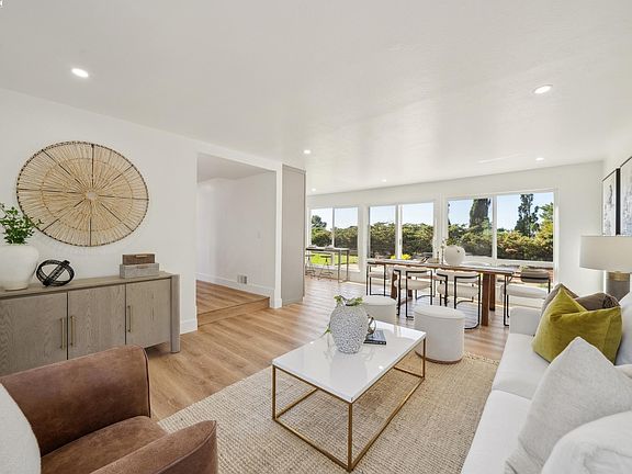 Discover this stunning corner-lot residence in Hayward's sought-after neighborhood, offering 4 bedrooms, 2.5 baths, and 2,584 square feet of living space. Designed to impress, this newly renovated home showcases a panoramic view of the Bay, perfect for enjoying breathtaking sunsets. Step inside to a modern kitchen featuring Samsung Bespoke stainless steel appliances, a sleek glass tile backsplash, quartz countertops, and an open-concept living and dining room with sliding door access to the backyard. The spacious family room is highlighted by an electric fireplace and a convenient half bath on the main floor. Upstairs, retreat to the primary suite, bathed in natural light, complete with a sitting area overlooking the Bay. The primary bath is a serene oasis with a walk-in shower and a standalone soaking tub. The second floor also offers three additional bedrooms (one staged as an office), a full bath, and a massive family room with its own electric fireplace and deck showcasing spectacular Bay views. Outdoors, you'll find a flat, private yard with newly installed lawns, perfect for hosting gatherings or relaxing with family. This home is an entertainer's dream, blending comfort, style, and unforgettable views.