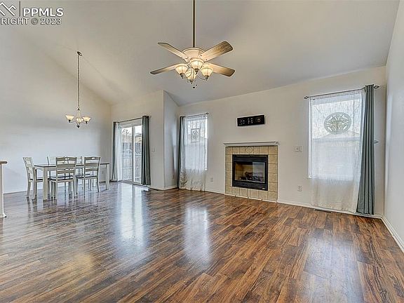 Sweet 1.5 story floorplan in newer Stratmoor Heights neighborhood! Main level living possible with two bedrooms, full bath and laundry downstairs, primary bedroom with attached bath and walk-in closet upstairs. Vaulted ceilings, windows and open floor plan make this home feel airy and bright. Large kitchen with laundry off the garage and pantry. Gas fireplace in the living room and AC. Walkout to back yard from the dining area. NEW carpet, NEW exterior paint, NEW flooring in main level bath, water heater new in 2020, roof replaced in 2018. Larger corner lot off a cul-de-sac. Gazebo for warm afternoons, plus chain-link dog run for the pooches (pet door in dining area!) in the back yard. Auto sprinklers in the front yard. Convenient to Pikes Peak State College, shopping, restaurants and I25. Would make a wonderful investment property as well.