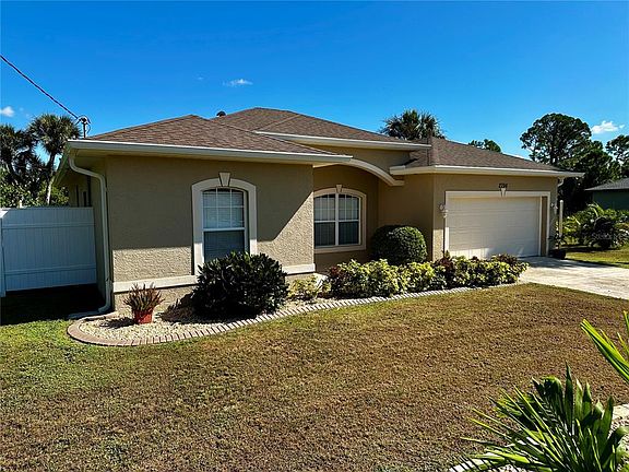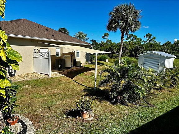 Welcome Home! Without a doubt you will be impressed by the quality of this beautiful coastal style 3 bed 2 bath home as it has plenty to offer! Situated on an oversized lot totaling .41 acres this home has it all with gorgeous landscaping, a heated pool with screened enclosure, an open floor plan, high ceilings, 3 large double sliders to let in sunshine & offer breathtaking views of the expansive backyard & pool. The beautiful french doors give entry into the office/den which features a large picture window facing the front of the house.The split floor design has 2 bedrooms on one side sharing their own full bathroom & the main bedroom on the other side offering a large walk in closet, double sliders opening to the pool, an en-suite bathroom with double sinks, 2 linen closets & an updated tile walk in shower. The kitchen features white cabinetry, with oversized granite counter tops, large pantry & stainless appliances. Off the kitchen you will find the laundry room with several storage cabinets and a utility sink just outside in the 2 car garage. Exterior bonuses include: a 10 x 16 shed with electric, a stone fire-pit, a sun shade sail on the east side to offer extra shade for picnicking or parking and the spacious pool deck which provides ample room to relax and enjoy the Florida lifestyle. The NW corner of the property even offers access to kayak around the Cocoplum Waterway! Updates to the home include: 2021 - Garage Door Opener, Well Pressure Tanks & Electric Water Heater, 2018 - HVAC & Pool Heater, 2022 - Water Softener Brine Tank & Reverse Osmosis Drinking Water system hooked up to kitchen refrigerator & Garage sink, 2023 - New Roof, 2024 - New Septic Tank & New Variable Speed Pool Pump, 2025 - Exterior House painted. This home is agent owned. Survey & Elevation Certificate available upon request.