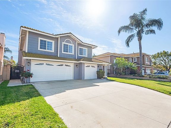 This beautifully maintained home has been lovingly cared for by the current owner for many years, and it shows throughout. The floor plan is practical, comfortable, and well suited for today’s lifestyle. The home features **formal living and dining rooms**, a **spacious kitchen** with breakfast bar seating, a casual dining nook, and ample cabinetry for storage. The **large family room with a brick fireplace** offers a warm and inviting space for everyday living and entertaining. There are **5 bedrooms and 3 bathrooms**, including **one bedroom and one full bathroom on the main level**, ideal for guests, extended family, or a home office. Upstairs, the **generous primary suite** includes **walk-in closets** and a well-appointed bathroom with **separate tub and shower**, along with **three additional well-sized bedrooms**. The **backyard is perfect for entertaining**, featuring mature landscaping and a **beautiful in-ground swimming pool**. A **built-in BBQ with refrigerator** adds convenience for outdoor gatherings. The yard is fully enclosed with **block wall fencing and wrought-iron gates**, providing both privacy and security.Additional highlights include neutral interior finishes, upgraded laminate wood flooring, plantation shutters downstairs, ceiling fans throughout, and a **large 3-car garage with built-in storage cabinetry**. Located in a **quiet, family-friendly neighborhood**, within **walking distance to all three levels of schools**, and conveniently close to shopping, dining, and major freeways. **Well cared for, thoughtfully laid out, and truly move-in ready.**