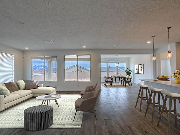 Amazing home! Views, views, views! Step inside and be greeted by fabulous Sandia mountain view. The open-concept living area is designed for both relaxation and entertainment. Cooking enthusiasts will be delighted by the sleek and modern kitchen, complete with stainless steel appliances, ample storage, and an inviting breakfast bar island. The adjacent dining area is an ideal space for family meals or hosting dinner parties with friends. The en-suite bathroom offers a large enclosed shower, dual vanities, and spacious walk in closet. This is a multi-generational property with the 4th bedroom having a walk in closet and en-suite bathroom as well! Enjoy all the benefits of the Mariposa community.