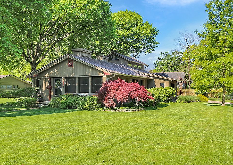 This distinctive mid-century modern home sits on a spacious corner lot in a highly desired neighborhood next to North Christian Church. The home has tons of character with 2 fireplaces, interior brick walls, barn wood accents, custom lighting, and impressive landscaping. Fresh paint and numerous windows and skylights provide an abundance of light throughout the house. Recent updates include roof, gutters, leaf guards, 2 Hvac systems, windows and window treatments, garage door, flooring, water softener, refrigerator, 2 gas logs sets and gas line, fully fenced back yard, and neutral paint.