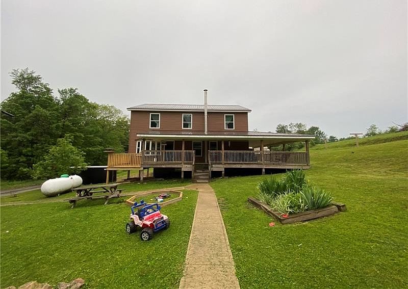Two Story Home renovated in 2011 ..on 3.0 Acres. FOUR Bedrooms with Large Covered Wrap-A-Round Porch. Detached Barn, Storage Room/office with Tongue 'n Groove Pine, and Utility Shed. Close to State Game Lands !!