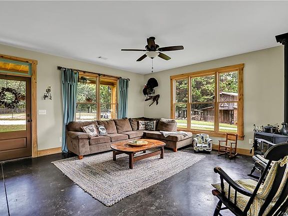 Charming farm house nestled on just under 11 acres. This home features a family room with wood burning fireplace opens to spacious farmhouse kitchen with gorgeous cabinets, granite counters, stainless steel appliance and breakfast bar. Large master on main with ensuite master bathroom & walk-in closet. Three additional spacious secondary guest bedrooms share a 2nd full bathroom. Beautiful wood trim and designer light fixtures throughout. No farm would be complete without a 30 X 40 custom built barn with 200 amp service to hold all your farm equipment. This farm has range free chickens, goats and pigs and enough open land to have more livestock. Deer and turkey roam the property as well. Just minutes from shopping, great restaurants and the hospital. Home is only 3 years old...practically brand new!