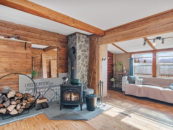 Come discover this 3 bedroom log cabin on 4 acres with gorgeous mountain views- just minutes to world class skiing at Jay Peak! Add your finishing touches to make yourself a cozy mountain retreat in the quaint town of Montgomery. The home benefits from recent upgrades including new appliances. A wood stove in the living room adds ambiance and warmth, and the sunroom brings in tons of natural light. The property is a nature lover’s dream with a variety of trees and perennials. Schedule your showing today!