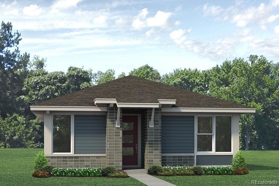 This home is estimated to complete in April of 2024. The Eldorado is a modern ranch style home which features 1,466 square feet and has a front covered porch and alley load two car garage. This home has all the indoor and outdoor spaces needed for contemporary living. The front of the home has a practical flex space which can be used as a den, living room, or formal dining room. A secondary bedroom and full bath are also located at the front of the home. The airy main living area is at the back of the home and connects to a comfortable outdoor covered patio. The main living area features a large kitchen, an adjoining dining area, and a cozy great room. A pantry closet and pocket office are useable areas that are adjacent to the kitchen. The owner’s suite is connected to the main living area and features a walk-in closet and dual sinks in the bath area. The owner’s entry from the garage has a coat closet and laundry room. The Eldorado floorplan has a 130 square foot zoom room, which is a flexible space attached to the patio by a slider and can be used for a variety of purposes. Photos and renderings are model photos and are subject to change.