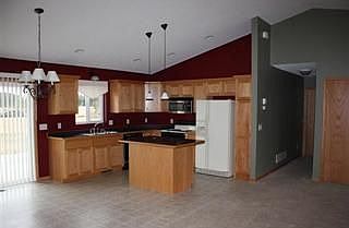 This home features an open floor plan with vaulted ceilings, three bedrooms, two baths, master bedroom, main floor laundry, breakfast bar, well decorated throughout. A 2 car attached garage, 2.5 acres and add'l land available.