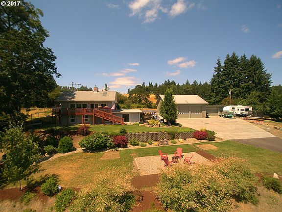 This completely remodeled large home has 3 bedrooms, 2.5 bathrooms, hardwood and tile floors, granite counter tops, Ductless air system, full appliances, and a pellet stove. Relax on the covered patio, overlooking pristine .9 acres of land. 40 x 36 RV barn with two 12 foot doors and one 8 foot door and a 12 x 40 loft. Add a separate 121 x 37, 2-car garage/shop - all plumbed with air, 220V and insulation. The home also features a small orchard. Brand new roof!