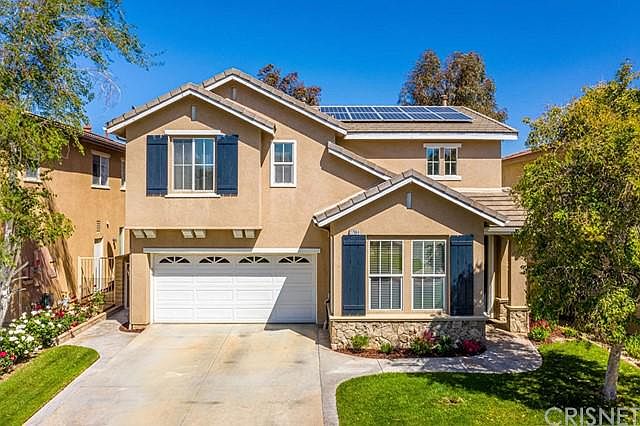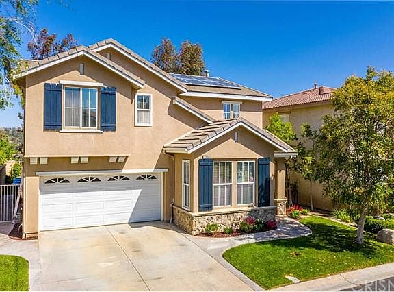 Sensational model sharp Valencia home with views of the valley! When Shea homes built the "Silhouette" tract, they were popular for open, functional floorplans and 27964 Periwinkle has all of that and a private yard with a view that will knock your socks off! Model sharp in every way the sellers have updated and upgraded over the years with quality. Remodeled kitchen with Quartzite counters, tile backsplash and stainless appliances. Sharp wood laminate floors. Tasteful drapes and blinds throughout. OWNED solar. Both full baths upstairs have been improved with marble counters, newer vanities, lighting, nice tile floors and the master shower is particularly impressive. Deck off the master to enjoy the view, custom shelving, two closets and everything is neutral. The floorplan offers soaring ceilings upon entry, a half bath down for guests and 3 bedrooms plus a good sized loft up. The builder offered it as a 4th bedroom and it could easily be that if desired but as a loft it's very open and takes advantage of all the windows and natural light. 2-car garage with 30 amp car charger and separate meter. This private community has access to all the wonderful Valencia amenities like pool, parks, paseo walking trails and more! Award winning schools and NO Mello Roos taxes. Better hurry on this sharp home!