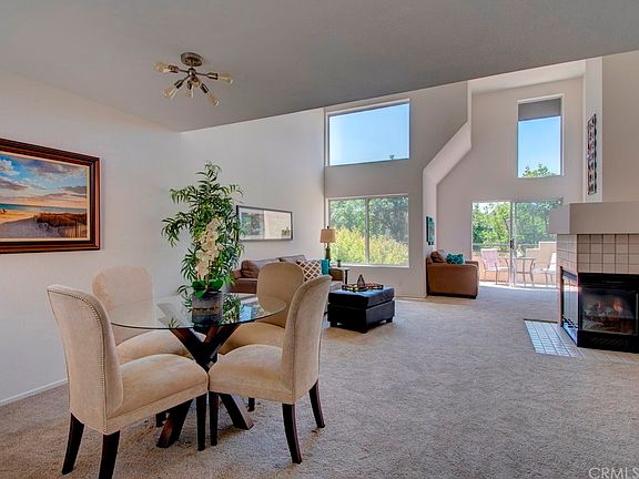 Check out this 2 bedroom, 1.75 bath town home located in Rainbow Ridge!~ Great location within the community with no other building behind you over looking nothing but trees!~ Privacy is a rare commodity in condo living & this home has it in spades! Who doesn't love an abundance of natural light? This home is flooded with it rendering an all day cheerful kinda feeling. You won't have to move a finger here. Kitchen features new stove, microwave, brand new vinyl plank floors, freshly painted cabinets with added hardware & new mini blinds. Dining area has high quality carpet & new light fixture. Living room features dramatically high ceilings, new high quality carpet, gas & wood burning fireplace & a special space that functions as either an in home office , retreat or media nook. Off the living room, you have a large deck with all day sun, yes, we arranged that just for you!~ First level master bedroom features walk in closet w/ recessed lighting. Master bath features re-glazed tub, added recessed lighting (vs old wood box lighting) & new fixtures. Upstairs bedroom has added wooden shutters. Upstairs shower re-glazed, new fixtures & a brand new custom shower door. Note: the paint & flooring is all done in updated tones that give you a fresh, neutral palate to work with. Enjoy sunny California days on your deck and the ability to leave your car in it's garage as the Rainbow Ridge is conveniently located walking distance to restaurants & shops & has a "walkability" score of 53!~