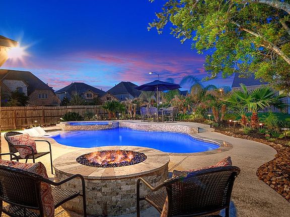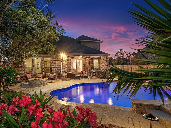Darling 4 bedroom home on a spacious lot in Harmony! Covered front porch with pavers, water softener, custom frames on all bathroom mirrors, crown moulding, abundant windows and storage throughout. The island kitchen with stainless steel appliances, double oven, under and over cabinet lighting, and breakfast bar opens to the sunny breakfast room and den with gas log fireplace; owner's suite down has luxurious bath; formal dining and study; three bedrooms, media room and game room up; large mud room off the 3 car tandem garage; Extended covered back patio is stubbed for gas for a future outdoor kitchen; enjoy gatherings around the stone fire pit, overlooking the heated pool with oversized sundeck and spa, and a storage shed too!