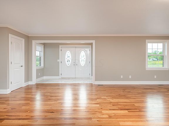 Immaculately remodeled 4-bdrm 2-1/2 bath ranch w/2 car attached garage & full basement. Solid Hdwd Hickory Flrs, Carrara Marble Flrs in kitchen/baths/entry & kitchen counters. New Custom Kitchen Cabinets w/Stainless appliances & Glass Tile Back splash. Master Bdm is 13x17 w/large walk-in closet & beautifully redone tile shower & large soaking tub. Updates Since 2017 Include: Windows, Siding, Furnace & A/C, Roof, Wiring, Plumbing, Drywall, Paint, Flooring, Insulation, Garage & door openers, crown molding, waynescott, deck & front porch. Easy Commute to Columbus & I-71 Exit. Delco Water. See A2A Remarks for additional info on work yet to be completed by seller. Additional 4.5 acres available to purchase.