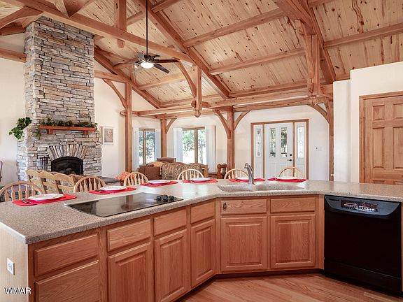 Yes, the front view is deceiving, it is over 3200 square feet and two levels. Main living area with great room, large kitchen, dining room, half bath and primary bedroom with den is at street level. A large, covered deck is great for entertaining and outdoor cooking. The lower level has a bonus room, with sectional sleeper, television, pool table and shuffleboard. The hall has full bath, laundry room and two bedrooms with king size beds and room to spare. Special features include roll a shield outside blinds, radiant heat, air conditioning, tankless water heater, large counter with built-in seating for six, downstair covered patio, extra vacant lot and oversized garage to mention a few. The floorplan accommodates various uses and lifestyles, you must see to really appreciate the value!