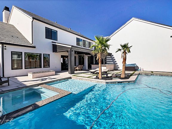 2,500 square foot climate-controlled RV Garage. A resort-style pool with a cascading waterfall and slide. Low-maintenance landscaping for more relaxation and less work. Plenty of open spaces for outdoor entertaining with patio heaters, an outdoor kitchen and fire pit. Home is offered with the furnishings currently in the home: TV's & electronics, washer/dryer, bedroom sets.