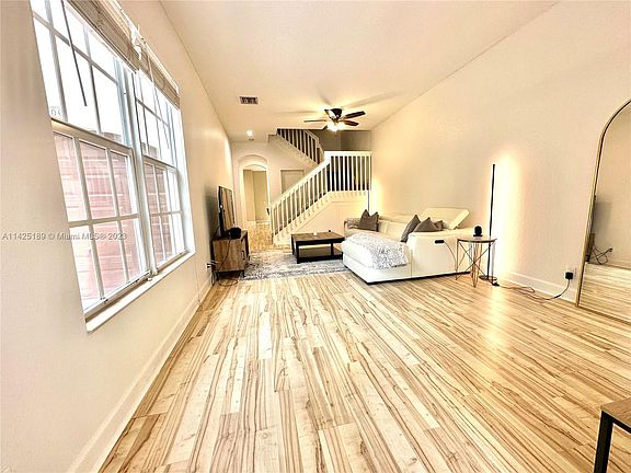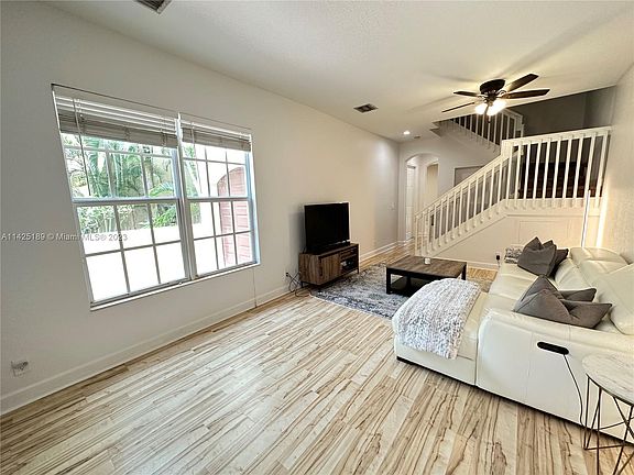 Rare chance to own a beautiful corner unit 3 Bed, 2.5 Bath townhome in gated Ventura Greens community. Spacious 1915 sqft, Impact windows, open kitchen/dining, separate living room and new tile wood plank flooring in all bedrooms located upstairs. Large Master with 2 walk-in closets & balcony. Master Bath has free-standing shower & tub. Ample storage, single-car garage, and community pool with extra guest parking. HOA includes outside dwelling and Roof. Fantastic location! Don't miss out!