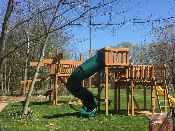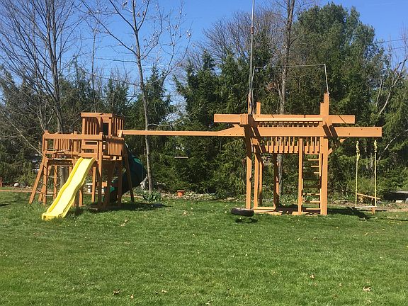 You have been waiting for that one level ranch on a bit of property 1.65 acres; and where you didn't have to remodel! This is the one. Owners have done extensive renovation including new windows, all new white kitchen with stainless appliances only a few months old. Large island with quartz countertops and bar seating. Open floor plan allows for two living spaces. One of the four bedrooms is at opposite end of home making for a nice in-law suite. Much of the flooring was replaced to a high grade modern laminate. The family room has a wood burner. New garage doors on the home. Hot water tank around 5 years old. Roof around 5 years old. The property is private and room to play. Playset stays. Fenced dog run is perfect for your pets or garden. At the rear of the property is a 24 x 40 two story outbuilding that has much potential with its loft and garage door for vehicles. (stairs can be raised to bring in vehicles). Apple and pear trees!