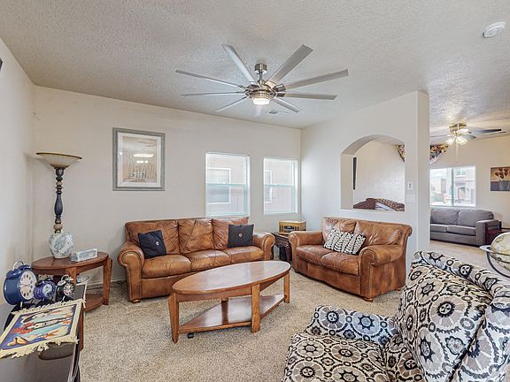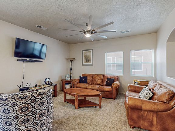 Welcome to this spacious home with beautiful views conveniently located in a quiet, Rio Rancho neighborhood. This home has new carpet, two new ceiling fans, new faucets, and most of the appliances have been installed within the past year. The home also features a beautifully landscaped, private backyard with a covered patio that overlooks the mesa sky. With a fresh coat of paint, this home is move-in ready!