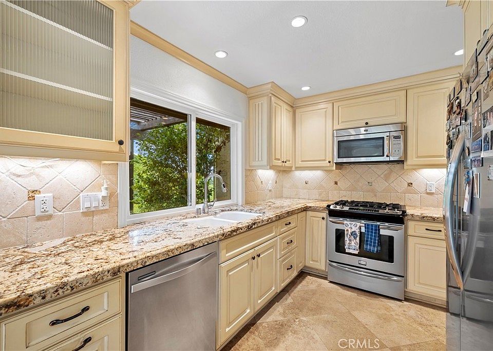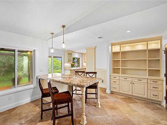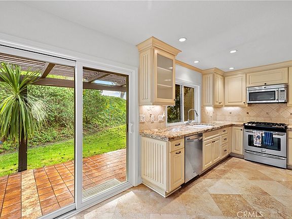 Tucked away in a peaceful and private location, this beautifully updated Blanca model offers comfort, style, and modern living. Featuring 2 bedrooms, 1.5 bathrooms, and an attached garage, this home has been thoughtfully remodeled with quality finishes throughout. Step inside to a bright and open floor plan where the wall between the kitchen and living room has been removed to create an airy, spacious feel. The remodeled kitchen boasts custom cabinetry, granite countertops, a custom breakfast bar, and newer stainless-steel appliances — including the refrigerator. Elegant stone flooring flows throughout the home, enhancing its sophisticated charm. The primary bathroom has been beautifully upgraded with a walk-in shower, custom stonework, built-in bench, and glass enclosure. Both bathrooms feature newer vanities, and the home is equipped with double-pane windows, sliding doors, recessed lighting, and a newer heating and air conditioning system for year-round comfort. Enjoy the outdoors on the large, secluded back patio, complete with a cover and breathtaking panoramic views — perfect for relaxing or entertaining. A custom front door adds to the home’s welcoming appeal. Set within a serene 55+ community spanning 484 acres of mature trees and rolling hills, residents enjoy resort-style amenities including two recreation centers, pools, spas, pickleball and tennis courts, lawn bowling, sport courts, gym/exercise room, billiards, clubhouse, and more. The HOA also covers exterior painting, front yard maintenance, trash service, and grounds upkeep, allowing you to enjoy a low-maintenance lifestyle. 27972 Calle Casal combines tasteful updates, privacy, and community charm — a perfect retreat to enjoy Southern California living at its best.is a 55+.