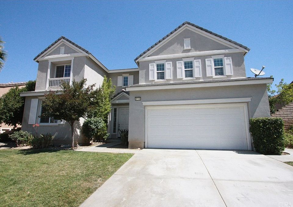 This 3,356 sq. ft. home has a lovely, open floor plan with cathedral ceilings, gorgeous spiral staircase, and HUGE office, playroom, work area downstairs. Great room feel with island kitchen and family room with wood encased fireplace, Butlers [removed] just off of the kitchen area. EXTRA large (4) bedrooms upstairs, with vanity area, deep spa tub and enormous walk-in closet in the master suite. Walk-in laundry area with hard tile flooring, which is also included in the upstairs dual sink bathroom. Backyard features covered patio. Located in a beautiful neighbor with gorgeous views, and just minutes from the 215 freeway Owner pays for landscaping and HOA fees.