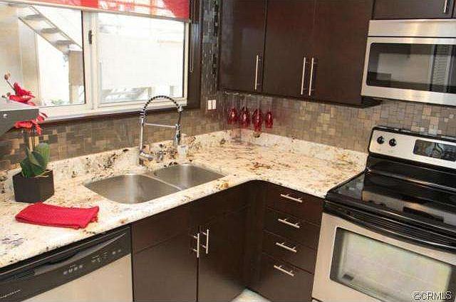 Spectacular 2 bedroom home with too many upgrades. To Start, the kitchen has been completely remodeled with custom dark wood cabinets, Granite counter tops, Custom backsplash, and all stainless steel appliances. The pictures speak for themselves! The bathrooms are the same. Custom dark wood cabinets, Beautiful Faucets, and Travertine counter tops. Also, the home has fresh carpet, designer paint and custom window coverings throughout. And if you're looking for a large yard, you just found it. The backyard is HUGE for this size of home. Even the garage has been redone with epoxy floors and additional storage shelving. The owner really took care of this home and upgraded it tastefully. Come see the home and make it your own.