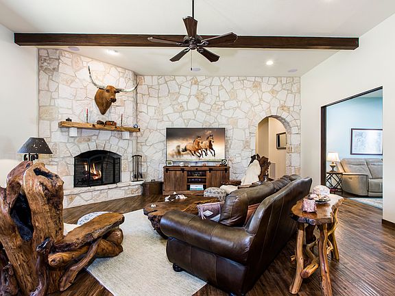 Situated in Bandera County, 27977 FM 470 is privately nestled upon 515+/- acres that have been fully cleared of all cedar trees and ready for all of your agricultural aspirations. This multigenerational Hill Country property is completely low-fenced for horses, cattle, goats, or other livestock of your choice. Opportunities exist to create your own ponds via the adjacent water well. Impressive rainwater catchment system allows you to hold roughly 70,000 gallons just within the family improvements alone. There are three individual water wells on the ranch. Horses of all breeds will happily call the 4-stall barn home, and enjoy shaded paddocks with ample space to roam. Six 3,000 gallon water tanks can be found at the horse barn as well. Thoughtfully positioned residences and buildings are separately high-fenced with its own gated entrance. Overlook your 72ft x 117ft riding arena, and numerous trails for equestrian adventures throughout the ranch. A 4541SQFT main residence offers a primary suite, two sizable bedrooms, chef's kitchen, large walk-in pantry, spacious living room, and a back porch that catches the afternoon breeze. An 1895SQFT well-appointed second residence features three bedrooms, two bathrooms, open kitchen/living room/dining room concept, large walk-in pantry, elevator, and scenic views from the front porch. The second residence's downstairs boasts a four-door garage, oil change pit, office, and a one bedroom, one bathroom guest apartment complete with a full kitchen. Additional improvements on the multigenerational ranch include a climate controlled car barn, BendPak Car Lift, hay storage building, food storage/root cellars, security systems, sound systems, climate controlled storage building, wheelchair accessibility throughout, gardening and chicken coop possibilities, and a stand-alone music studio/office with half bathroom. Further information is available regarding this truly remarkable estate.