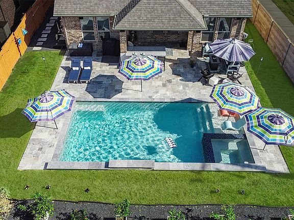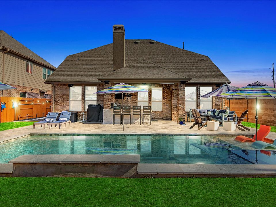 Enjoy luxury living in the highly sought after neighborhood of Harmony on a cul-de-sac lot. Vacation all year long in your backyard oasis featuring a heated pool & spa, huge patio with Travertine floors, outdoor kitchen with bar seating, speakers + grassy areas for pets & kids! This 4 bedroom home with a study & game room features on trend colors, wood-look tile floors in the main living areas, wood floors in the study & primary bedroom, a sun drenched family room with 2 story ceilings & a corner fireplace open to a beautiful kitchen with custom lighting, farmhouse sink, wine fridge + a huge walk in pantry, study with a wall of built ins, a dining room with a custom built wine nook, an oversized 2.5 car garage & a fully decked attic. Walking distance to shopping, restaurants, grocery & schools. Easy access to 99, 45, Hardy, The Woodlands. Harmony offers 2 pools, basketball/tennis courts, splash pads, walking trails, gym, community center, parks. Floor plan & list of upgrades attached.