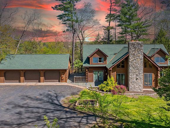 A true Dream Home for the person who craves the quiet serenity of being surrounded by nature yet also wants the perks of modern upgrades. Nestled away on just over 4 wooded acres with a lovely creek winding through, you're sure to love everything this home has to offer. This contemporary log style home welcomes you inside with extensive wide plank hardwood floors and exposed ceiling beams that give a warm and cozy feel, but also offers plenty of living space to spread out. The large family room is sure to be the main gathering place with its 2-story vaulted ceiling, stone mantle fire place, and gorgeous windows that let the sunlight flow in. The half-bath is just off of the family room. Just a few steps away is the kitchen that will make anyone's inner chef beyond impressed! Boasting a gas range with commercial hood, built in steamer, teppanyaki grill, built in convection and conventional dual ovens, dish washer, dish drawer (ideal for washing smaller loads), and MANY more bells and whistles! This is the spot that will be the heart of your home and the envy of your friends and family. The attached dining area makes entertaining a breeze. At the other end of this floor is the Master Bedroom Suite...and the word impressive doesn't even touch it. The bedroom itself has french doors that step out onto your private deck where you can sit with a good book or relax and take in the beauty of your private paradise. The Master Bathroom boasts an antique style bathtub that will help soak away the worries of your day. There is also a large stall shower, plenty of vanity space, attached walk-in closet with custom shelving, and laundry room. Upstairs you'll find two additional bedrooms with vaulted ceilings, full bathroom, and loft style sitting room that overlooks the family room below. There is also easy access to the attic area that makes storage a breeze. The basement is not finished, but offers additional storage or can easily be turned into future living space. Here you'll find a cast iron wood burning stove, active radon system, water treatment system, and UV system for the well water. Outside is just as impressive as inside with a large wrap-around deck and a breezeway that attaches to the oversized 3-car garage. The garage also has a small hen house built in with easy access for you from inside the garage and access to the outdoors for chickens. There are so many more amenities and upgrades! Homes like this truly only come along once in a lifetime. Schedule your tour today!