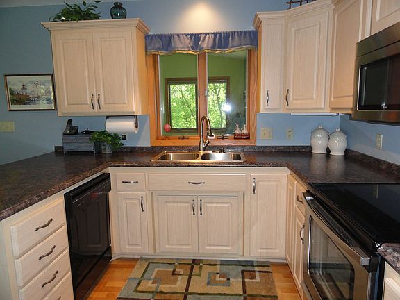 Manicured from head to toe. 4 bed, 3 bath home with tons of storage. 4 season porch with gas fireplace, family room with wood fireplace. Remodeled kitchen with anti-bacterial composite cabinet doors. Newer counter top and fixtures. Stainless appliances, soothing colors. Spacious Living and dining spaces with bow windows to show off the wooded property beyond the grassy landscape. Huge garage, new concrete patio and RV parking. Must see.