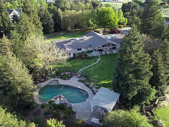 Tucked among Multi-Million-$ homes, this 5.1 acre estate combines the best of country living with all the conveniences of city life! This location, with its gently rolling terrain and flat pasture, offers multiple sites where you could build a mansion without concern of over-improving for the area. The land alone is worth the asking price! Privacy, serenity and seclusion are just minutes from River Park and Fwy 41, or Clovis North HS. Impeccably maintained, the charming, 4 Bdrm + office, 2744 sq ft country-style home has vaulted tongue-and-groove ceilings, river-rock fireplace, granite kitchen, new dual-pane windows, laundry/craft room, WH fan, skylight and 3-car garage. You'll want to spend lots of time outdoors in the beautiful gardens, on the large covered patio or by the fenced pebbletec pool and BBQ area. Large storage shed and very good well. Gorgeous views, spectacular sunsets, star-gazing and singing birds are waiting for you to enjoy in this very special hidden paradise!